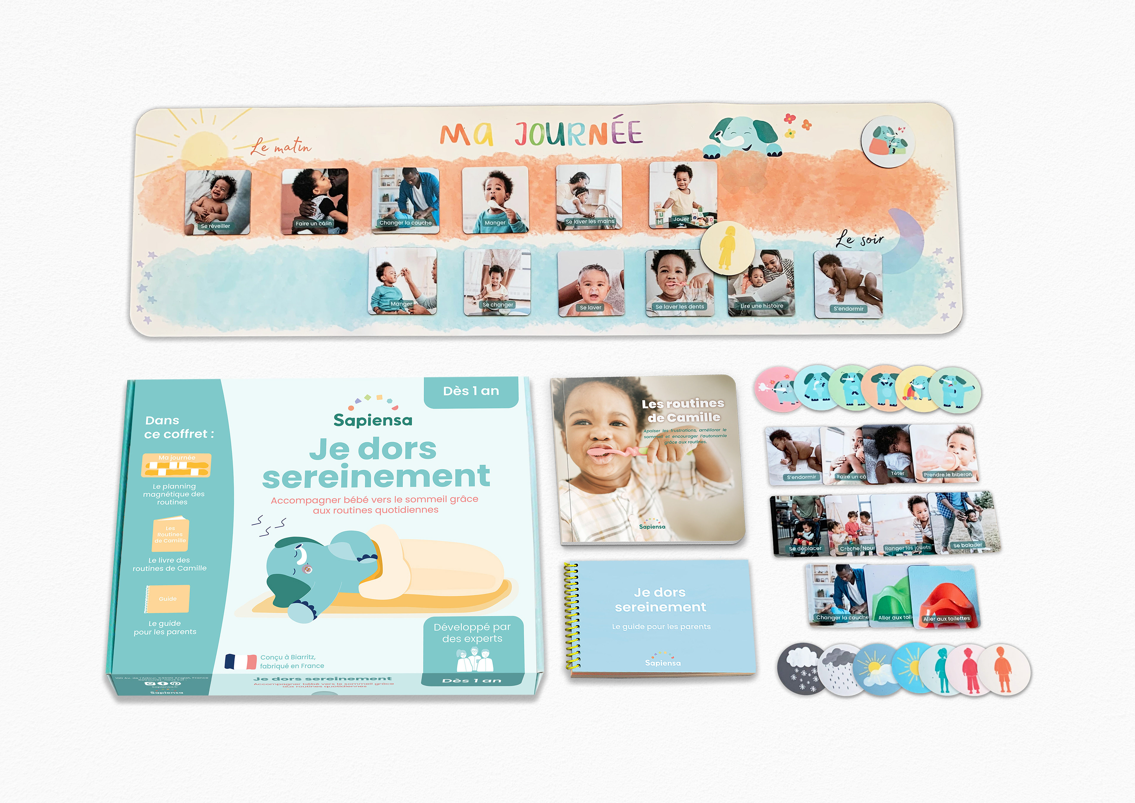 Ce projet consiste à créer plusieurs packagings de coffrets dédiés à la petite enfance. L’enjeu était d’harmoniser l’ensemble des supports tout en respectant l’identité graphique existante de la marque.